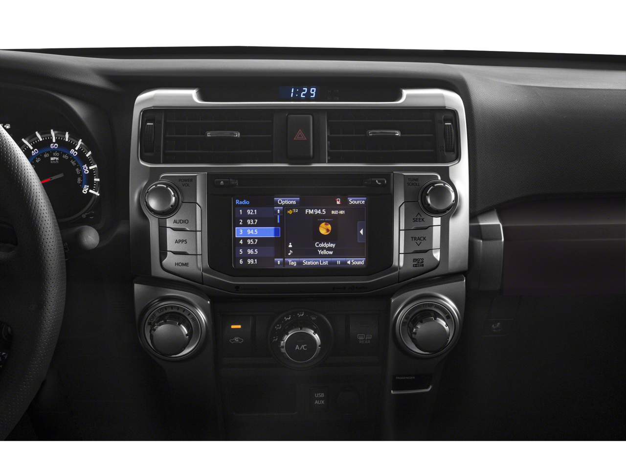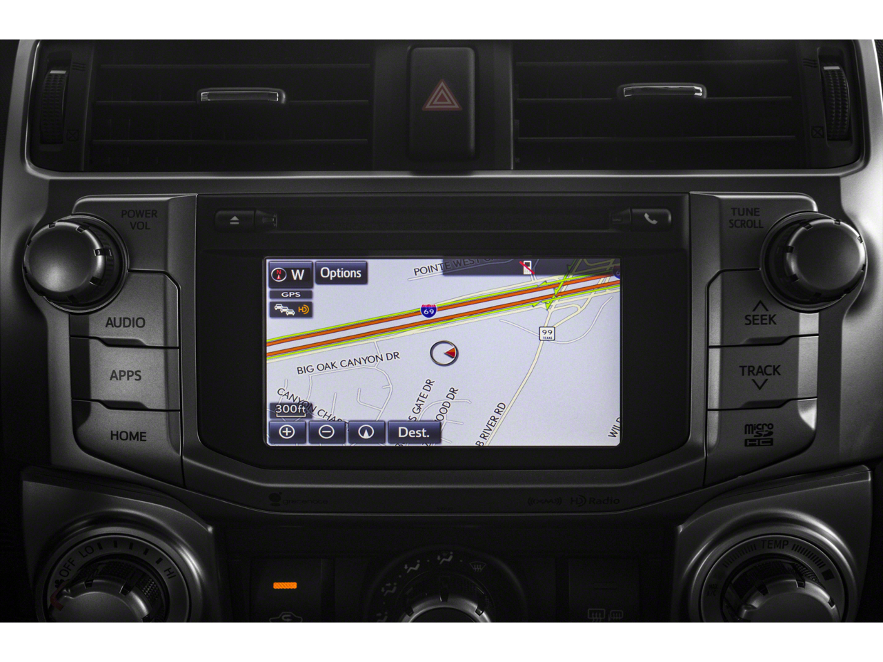 - Includes navigation system, 6.1-in. high-resolution touch-screen w/ split-screen display, AM/FM cache radio, HD radio, CD player, 8 speakers, auxiliary port, USB 2.0 port w/ iPod connectivity and control, advanced voice recognition, hands-free phone capability, phone book access and music streaming via Bluetooth® wireless technology, Siri Eyes Free, Entune App Suite, HD radio predictive traffic and Doppler weather overlay, and Satellite Radio w/ 3-month All Access trial.